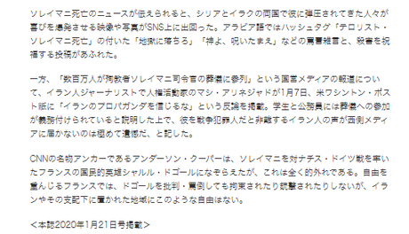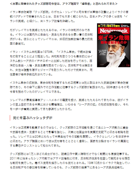 JB Press は、ソレイマニが大量虐殺を行ってきたことを報じている。