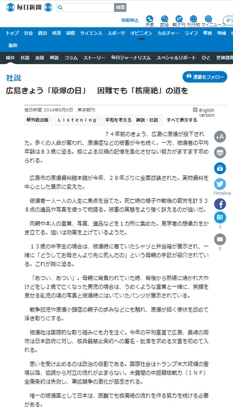 唯一の被爆国として日本は、困難でも核廃絶の流れを作る努力を続ける必要がある。