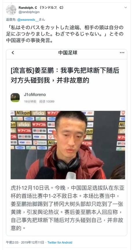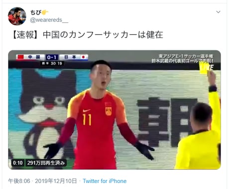 なぜ「一発でレッドカード」にならなかったのかも、不可解な判定とされるが、中国選手によるラフプレーは、過去に何度も起きている。