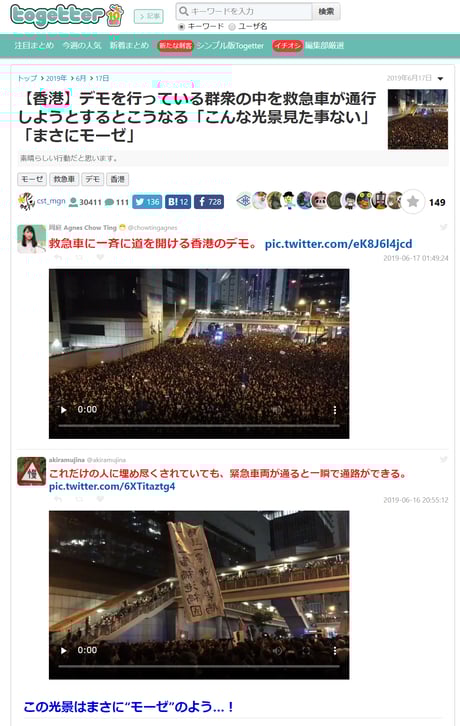 ---------------  香港デモ 救急車に道を空けるデモ隊