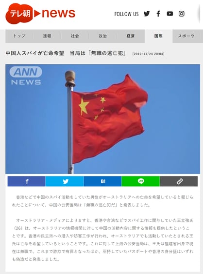 オーストラリア・メディアによりますと、香港や台湾などでスパイ工作に関与していた王立強氏(26)は、オーストラリアの情報機関に対して中国の活動内容に関する情報を提供したということです。香港の民主派への潜入や妨害工作が行われ、オーストラリアでも活動していたとされる王氏は亡命を希望しているということです。これに対して上海の公安当局は、王氏は福建省出身で現在は無職で、これまで詐欺で有罪となったほか、所持していたパスポートや香港の身分証はいずれも偽造だと発表しました。