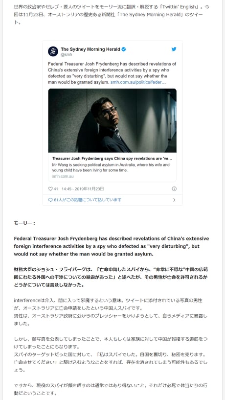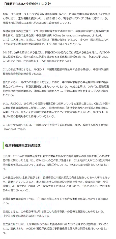 少なくとも、中国スパイの暗躍の事例を、同時に報じるくらいはすべきでは無いだろうか?
