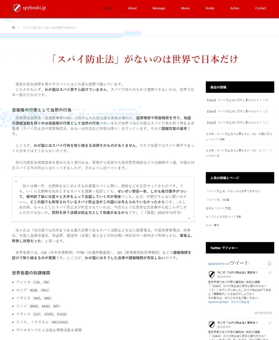 テレ朝や朝日新聞は、スパイ防止法の制定に反対する最右翼の大手既存メディアである。