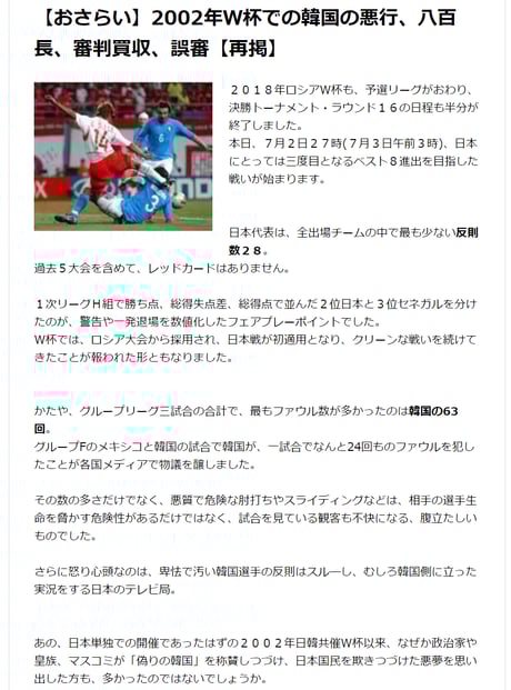 【おさらい】2002年W杯での韓国の悪行、