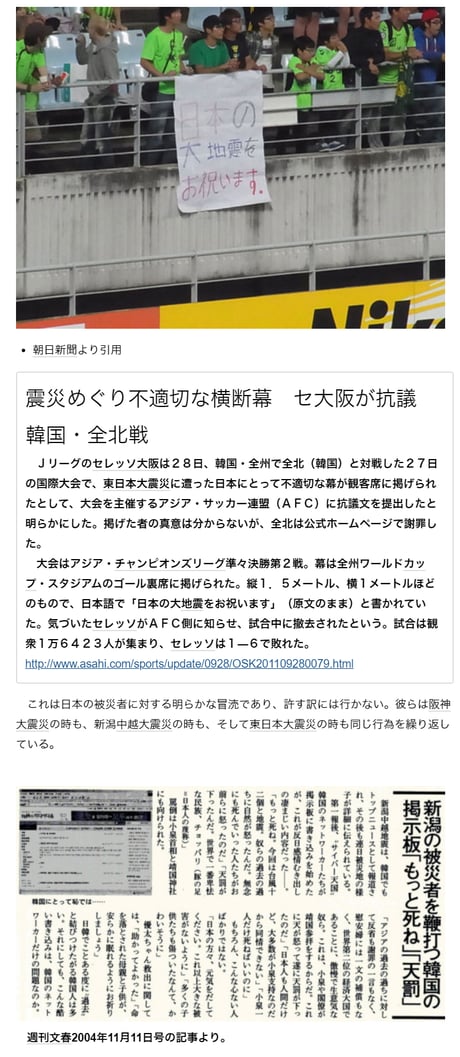 奇誠庸(キ・ソンヨン)選手による「猿セレモニー」や「大震災をお祝いします」垂れ幕など、日本に対するヘイト行為が繰り返されていたのに「融和が進んでいた」とは片腹痛い。