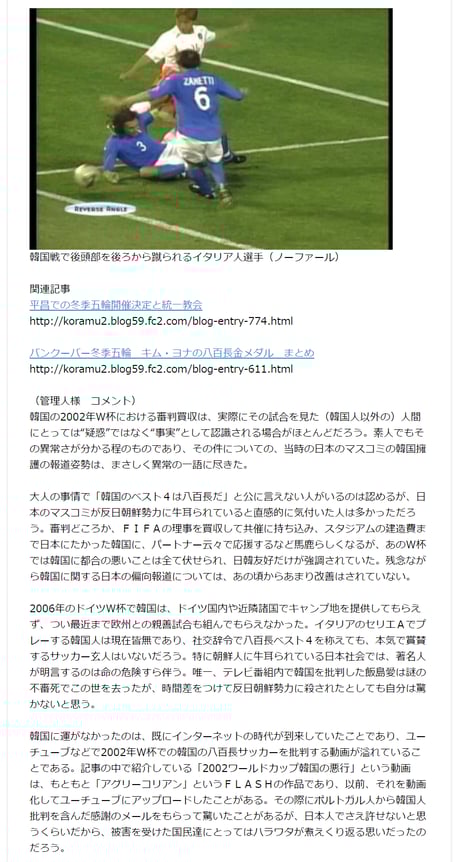 ところが日本メディアは、これを全く報道しないどころか、韓国の対戦相手を応援したり誤審に疑問を呈した芸能人を干すなど、異常なほど韓国擁護・応援を続けた