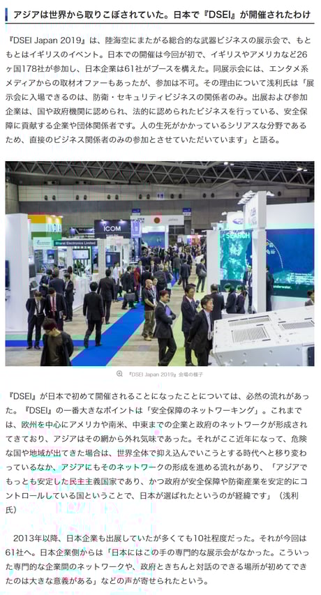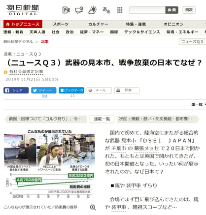 朝日新聞「武器の見本市、戦争放棄の日本でなぜ?」