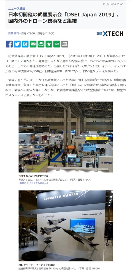 「この記事は、本当にひどい。『銃や装甲車ずらり』なんて書いてるけど、実際に展示されている装甲車は2台程度だったし、展示品も実際に災害時技術中心だった。これはもう、実際には殆ど中身を見ずにさっさと帰宅してから書いた記事だろう」