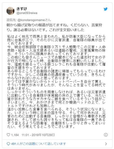 朝日新聞「「私は雨男。大臣になって台風三つ」 河野防衛相が発言」