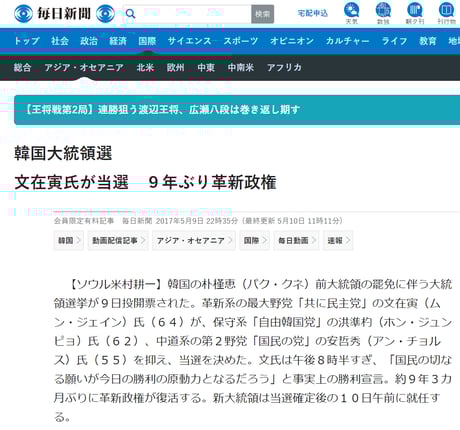 ------------------------ 毎日新聞 2017.5.9