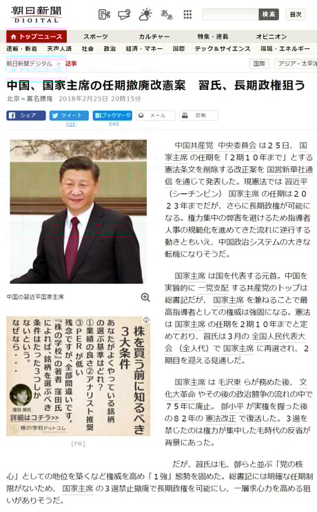 ------------------ 朝日新聞 2018.2.25