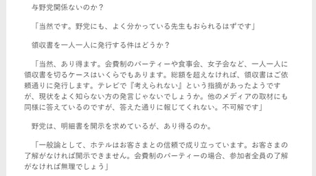 「桜を見る会夕食会、最低1万円超」
