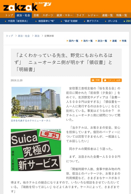 ------------------  夕刊フジ 2019.11.20