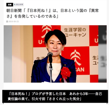 日本ヘイトを徹底した朝日新聞ならではの社論を背景に、この手の汚い記事が数多く書かれていた。報道でなく、報道を装った扇動であるプロパガンダ・メディアの本質を体現した記事だ。