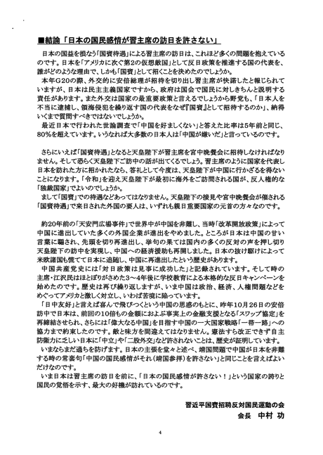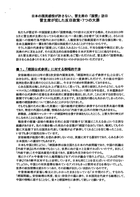 中国共産党の侵略行為や残虐行為を日本が許容するのと同義』となるので、習近平来日に反対するものです。