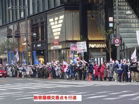日比谷野外音楽堂から出発して数寄屋橋交差点を経て、鍛冶橋交差点まで、「ナチスのヒトラーを国賓として招くがごとき、習近平国賓招聘」への反対を訴えました。