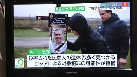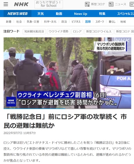 直接は言っていないが「民間人を救出しているのがウクライナ兵」の様に見えるように報道しているNHK。