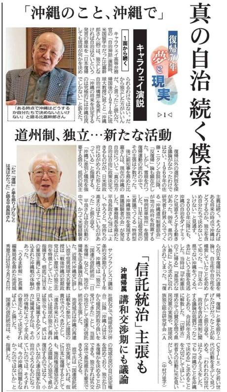 沖縄県祖国復帰50周年を利用した歴史捏造記事。