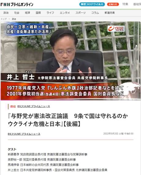 日本共産党の発言を「戦争犯罪」だと誰も指摘しないのは、報道番組として問題であると思う。