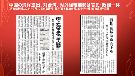 中国の海洋進出,対台湾,対外強硬姿勢は官民・政経一体