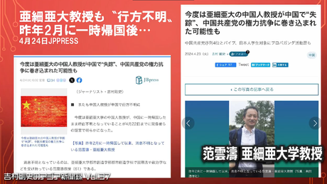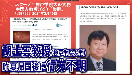 胡教授の突然「失踪」は昨年3月16日、筆者取材による本誌記事でスクープ。2023年8月の夏休みを利用した一時帰国を機に連絡が取れなくなった。その翌月には亜細亜大学の中国人教授も2023年2月中国に一時帰国したまま所在不明となっていることが発覚。相次ぐ日本国内在住の中国知識人の“失踪”劇に、「中国当局による拘束」が疑われ、その背景が様々に取りざたされていた。