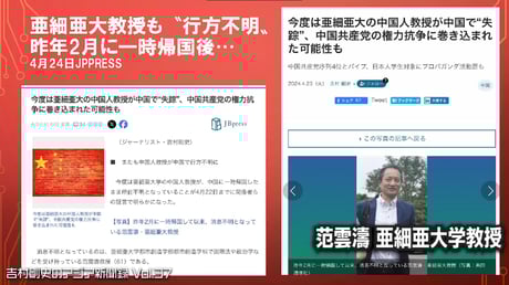 ・中国人教授の“失踪”相次ぐ (00:45~