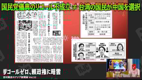 頼政権が完膚なきまでに抑え込まれた台湾から、吉村剛史記者の台湾レポートです。