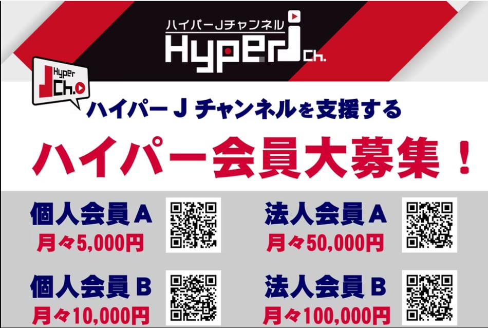 ハイパーJチャンネルでは、当チャンネルを支援する「ハイパー会員」を募集中!