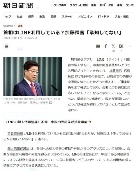 前からわかっていたLINEの危うさ (JBPress 2021.4.5