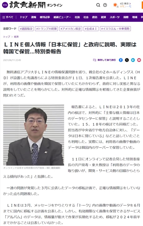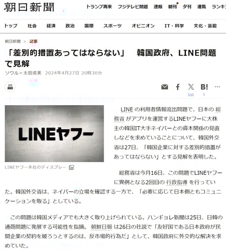 ・韓国政府はLINEから情報収集していることを日本に通告済み