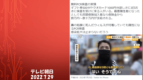 ・ギフト券配布のPCR検査で「感染者数」を水増しする厚労省