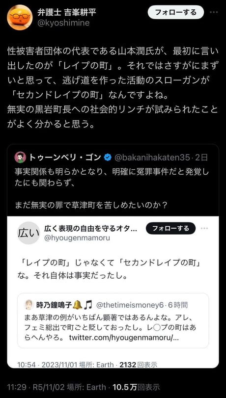 杉田議員批判の大椿社民党副党首による草津への誹謗中傷