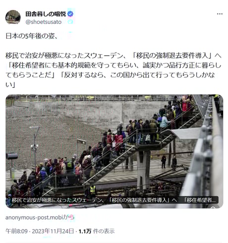 「移民の要望を受け入れろ」と言いながら、「現地の受入住民の切実な訴え」には耳を貸さない「多文化共生」と云う名の「他文化強制」が行なわれ、さらには「他文化強要・地域文化と治安崩壊」が起きつつあります。
