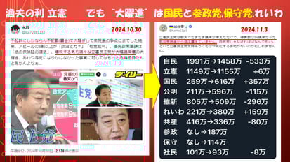 『政治と金』を追求した立憲民主党 ⇒ 微増(実質負け)