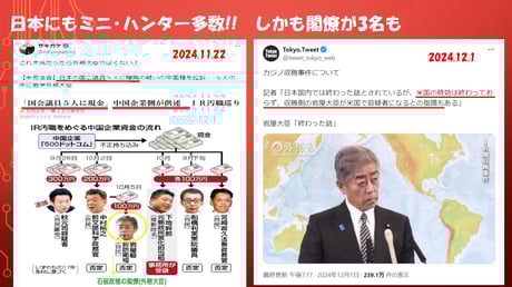 ・日本にもミニ・ハンター多数!! しかも閣僚が3名も
