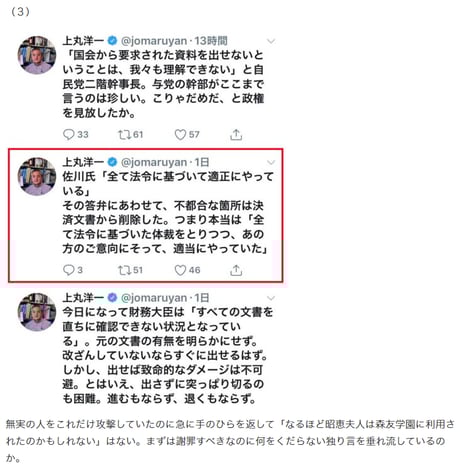 参考:朝日新聞の上丸洋一記者「やっぱり昭恵夫人は籠池に利用された被害者かも…」