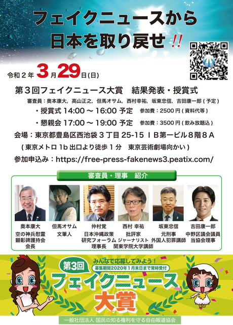 坂東忠信審査員「報道しない自由により、オールドメディア情報空間ではそもそもなかったことになってしまう。事実を「無」で塗りつぶすかのような偏向性ダブルスタンダードは人の知識欲や判断材料に害悪をもたらす。」