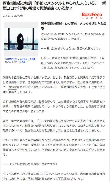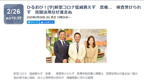 ・twitterの書き込みを精査せずに垂れ流したり、日本政府を批判するために状況の違う韓国の検査人数と単純比較する。
