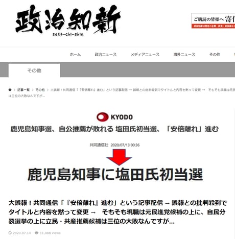 共同通信の虚報を曝く政治新知