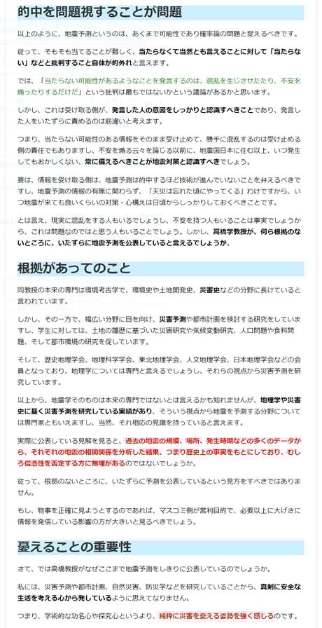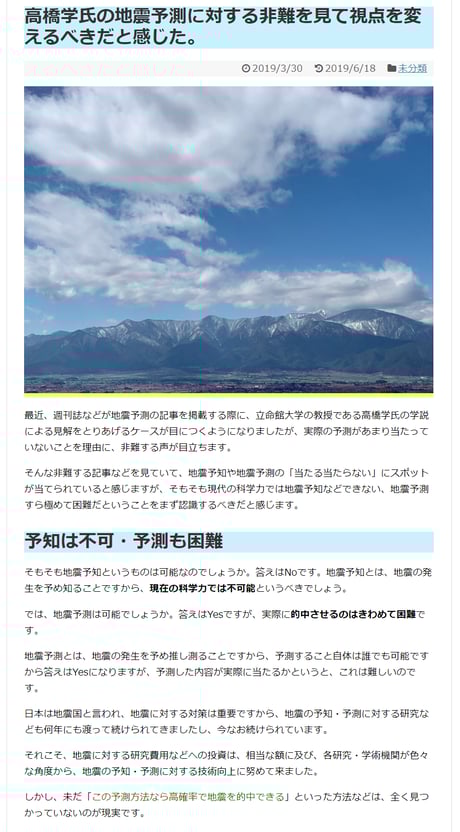 ・あとこの高橋氏は地震学の専門家ではない。自分からマスコミに地震のデマを流しまくる人物です。なので地震学者からは嫌われています。