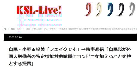 フェイクです。提言案には38項目の内容がありますが、そのうちの1項目に「コンビニ、運輸等の分野での外国人労働者の活用について更に議論を深め検討を行う」と書いてあるだけ。特定技能に加えることを求めてはいないし、提言の柱などではありません。外国人労働者を求める前にやるべき事があるはず。