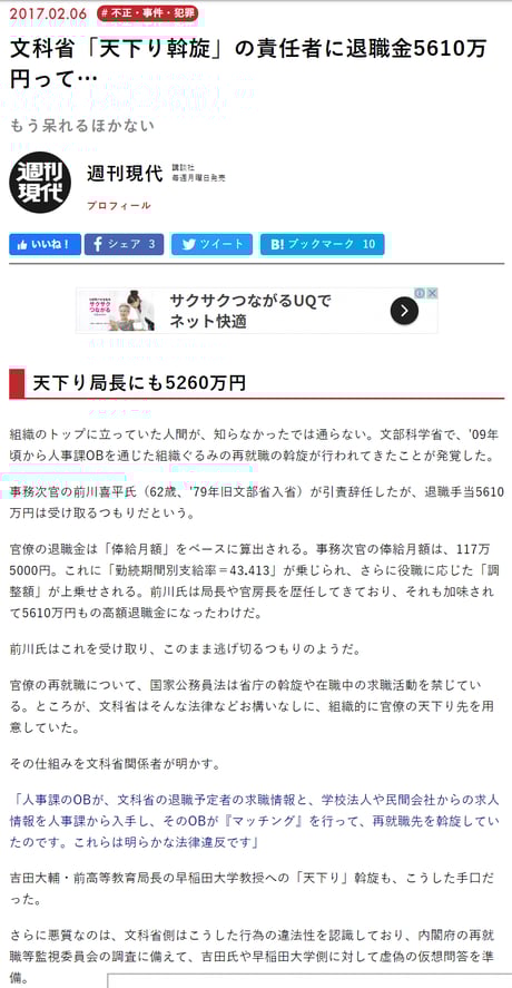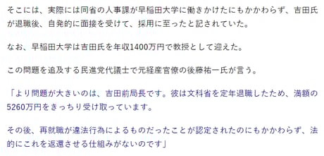 安倍政権を誹謗中傷し続ける、悪質な違法行為「天下り斡旋」の前川喜平の時も「同様に甘い処分」だったが、「首相官邸が実質決定」なんて報道は無かったし、前川喜平に対するマスコミからの追求や非難もほとんど無かったのだけど?
