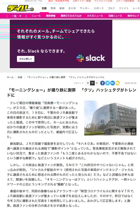 「テレ朝モーニングショーで何かしらの捏造報道があり、全鉄道ファンが激おこ、彼らを完全に敵に回した」