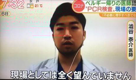 ・2020年5月7日放送の「グッド!モーニング」(朝4:55 ~8:00)で、渋谷医師が「PCR検査を大至急増やすべきだ!」とメッセージを流しているように放送