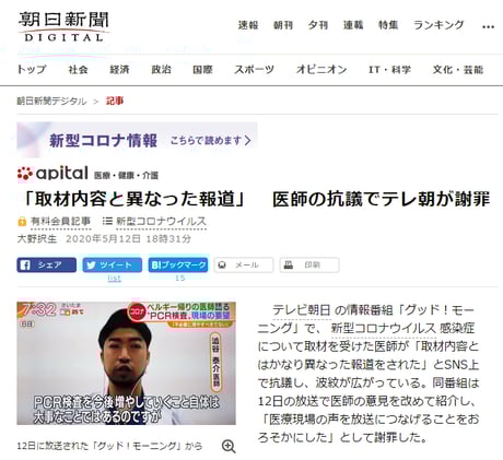 テレ朝『グッド!モーニング』の悪どい手法が被取材者によって暴露された。ベルギーから帰国の澁谷泰介医師。PCR検査をやみくもに増やすのは得策でないと言っているのに真逆の編集に。Facebookで本人が怒りの告白。愕然とするのは当然だろう。それは"捏造"だから。だが現場は当り前。その感覚が怖い。 https://t.co/Aj4qHWoRny