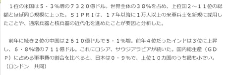 また、日本に核ミサイルを向けている中国や北朝鮮の「核軍備費」こそ、比較すべきではないのか?
