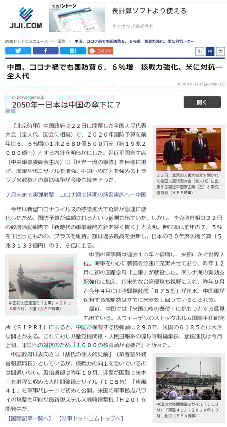 「いずも」など防衛費1.1兆円、コロナ対策に回すと…<2020年 核廃絶の期限>:東京新聞 TOKYO Web https://t.co/XG6tRcKAQc わざと中国の予算を出さないだろ。これをフェイクニュースと言うんだよ。