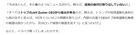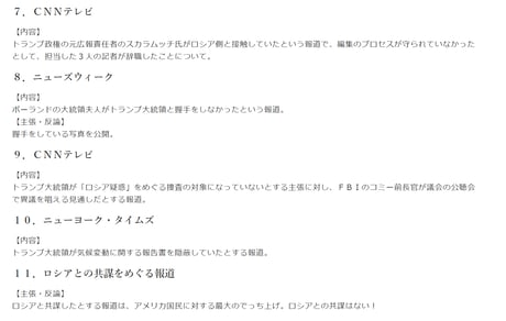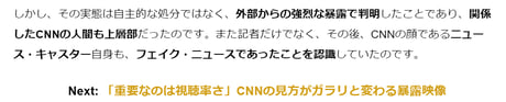 CNN担当者が3名も辞任しているのに扱いは小さく「批判的なメディアに圧力をかける狙いがある」と、メディア側の問題点を矮小化し、トランプ大統領のメディア批判が不当なモノという印象を与えています。