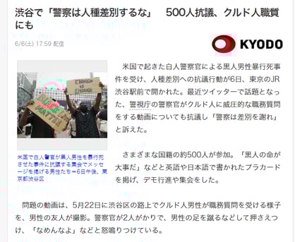 それを無理矢理「人種差別」に結びつけて「対立を煽る」のは、過激派やテロ組織のやり口だ。共同通信は、動画に至った事情まで報じる必要があった。社会不安を招く、悪質な印象操作記事と言っても過言ではない。
