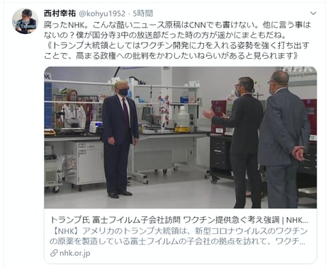 トランプ氏 富士フイルム子会社訪問 ワクチン提供急ぐ考え強調